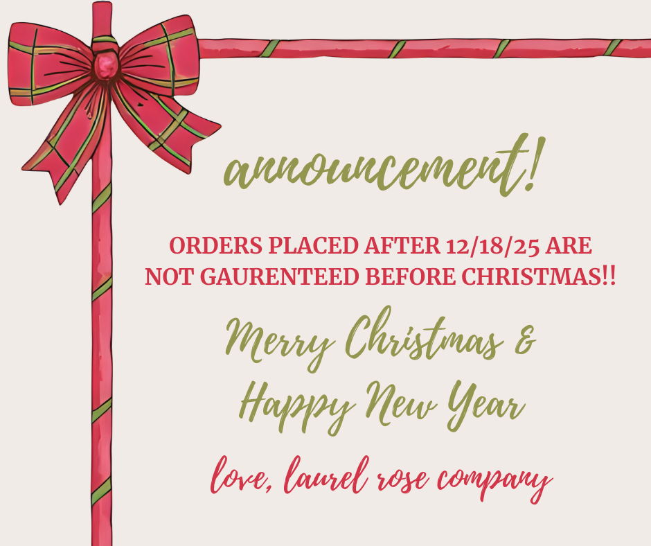 ORDERS PLACED AFTER 12/18/25 ARE NOT GAURENTEED BEFORE CHRISTMAS!!